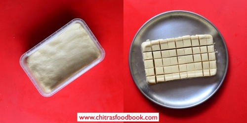 - Cut into small squares and store in an air tight box. It tastes the best from the next day.