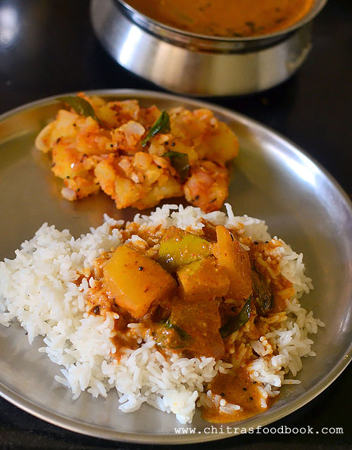 After a long time I tried few Karnataka recipes in my kitchen. I prepared Karnataka style bele rasam, Raw mango gojju and Potato Palya/ alugadde palya for rice. As always, my wonderful school moms friends are the source for these recipes as well. I learnt this aloogadde palya / potato curry / urulaikizhangu poriyal recipe from my friend Archana.