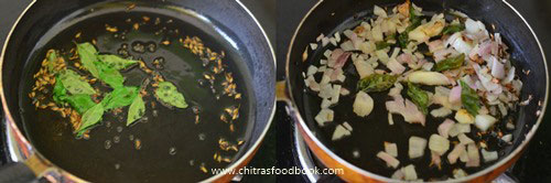 - Temper and saute onion, green chilli. Add potato cubes, salt and grated coconut.
