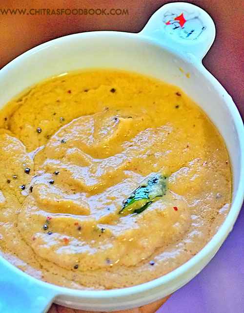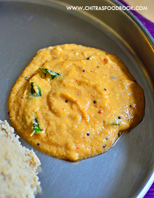 - Temper mustard seeds, curry leaves and add to chutney. Mix well and serve with idli, dosa, pesarattu.