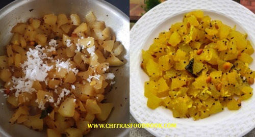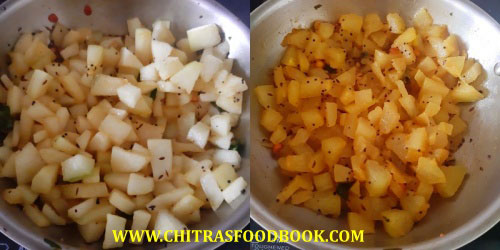 - Add the chopped ash gourd pieces and mix well in low flame.