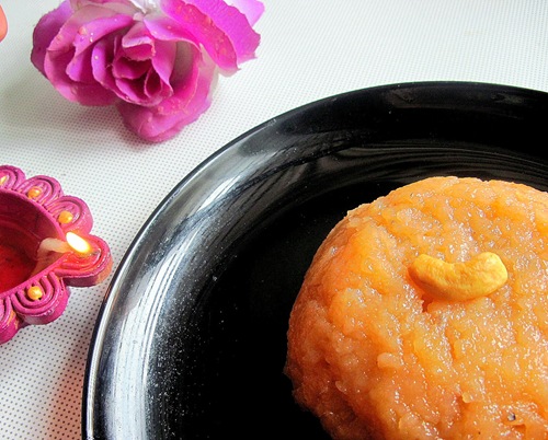 I came to know about this aval kesari/poha kesari from my school friend Swarna. It was very new to me because I’ve tasted kesari made with rava / semiya. When she told about this I found it interesting. I made for my friday pooja . It came out well and tasted excellent. We loved it. Its very simple to do. Try this and let me know ladies !!