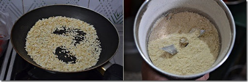 - Here i’ve powdered the aval. If you wish, you can roast the aval, wash and cook as it is. It will take little more time to cook. So you can use a presssure cooker for quick cooking.