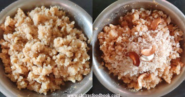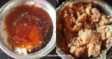 Last week I made this for my pooja asking the recipe and procedure from her. Actually my MIL told me to add powdered jaggery to the powdered and soaked poha directly. But I made jaggery syrup and strained it as it had some impurities. If your jaggery is clean, you can powder and add it as such.