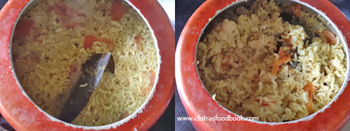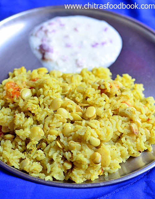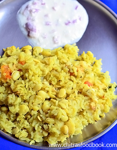 - Open the cooker after the steam is released naturally. Fluff the rice and serve with raita.
