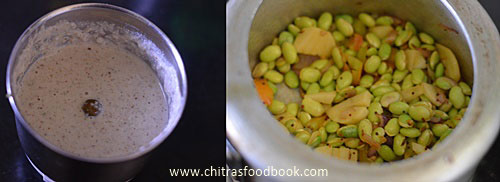 Now Avarekalu season has almost come to an end. Sorry for this late posting. I hope this recipe would be useful to you all at least for the next season. If you wish to try this masala sagu, just replace avarekalu with potato, cauliflower or mixed vegetables like carrot,beans & peas. The ingredients I have used for grinding masala is the highlight of this recipe more than the vegetables. Do try it and leave your feedback here. Lets see how to make this yummy Karnataka style Avarekalu sagu/Kurma for Chapathi & poori.