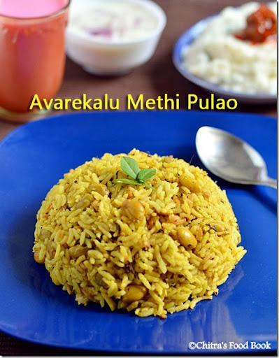 Avarekalu methi pulao recipe / avarekalu bath recipe – Easy rice recipe to prepare in weekend & lunch box !