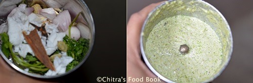 - Grind all the ingredients given under “to grind” to a smooth paste adding water. Set aside.