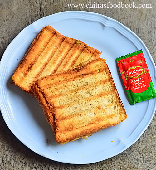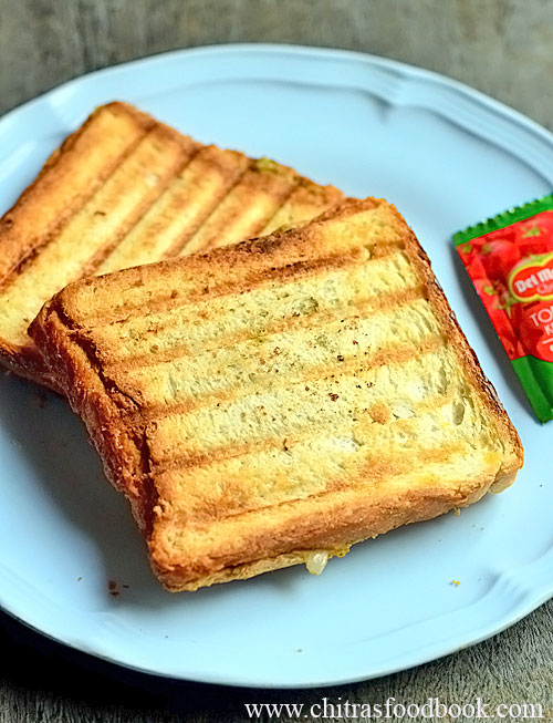 - Cover and toast in the sandwich maker or cook in dosa tawa greased with butter.