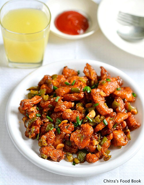 The bright red of the manchurian against the white backdrop looks SO alluring. I want to reach across and grab some. :)