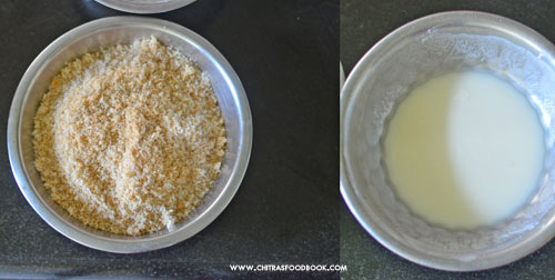 - Make Maida paste adding some water and keep in a bowl. Keep the bread crumbs ready in another bowl.