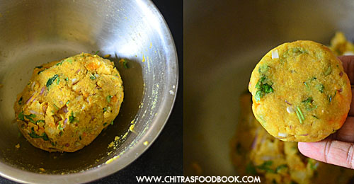 - Mash everything well and add 1/2 to 3/4 cup of bread crumbs, 2 tbsp rice flour to make a non-sticky dough.