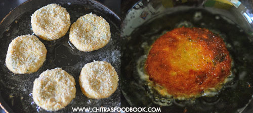 - Arrange in a plate. Heat a dosa tawa with oil to shallow fry. Place the cutlet and cook both the sides.