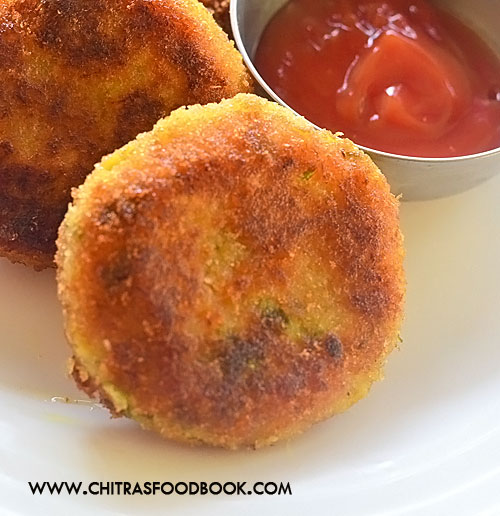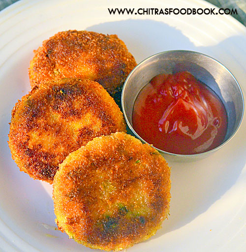 - For deep frying, heat oil in a kadai and fry the cutlets on both the sides till golden. Remove in a tissue and serve with tomato ketchup.