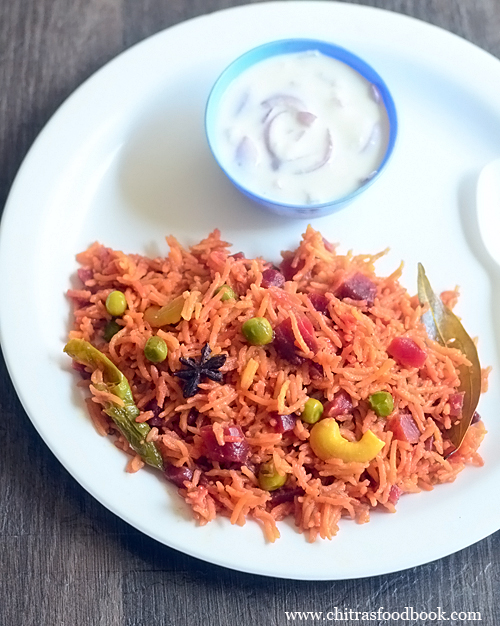 All you have to do is just saute all the spices, beetroot , add rice and cook. It can be done under 15 minutes. You can prepare it easily for your lunch box. Even kids would love to eat this rice as it looks colorful. Friends, do try this easy beetroot pulao recipe for your lunch box or a quick weekend lunch. You will love it ! Here you go, Indian style beetroot rice recipe with step by step pictures.