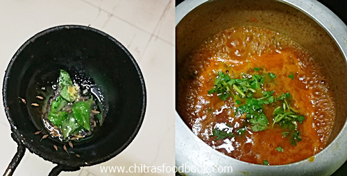 - Temper the above ingredients. Add to chutney and boil the tomato chutney for few minutes. Remove when thick. Garnish with coriander leaves.