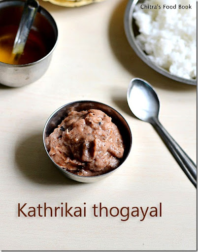 Yummy brinjal thogayal for rice – Tastes best when mixed with hot rice drizzled with ghee!