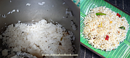 - Fluff gently and serve hot with idli sambar or coconut rice.