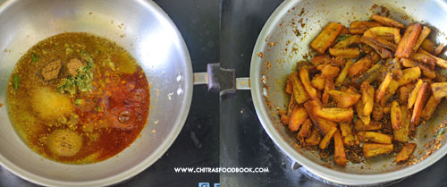- Mix gently to coat the masala. Let it cook in low flame for few minutes.