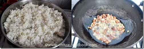 - Wash and pressure cook the rice adding required water and a drop of oil in low flame for one whistle. Open the lid and spread the rice in a plate.. Allow it to cool. Rice should be separate.