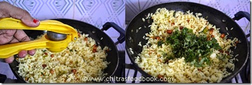 - Add this to the cooked rice and mix well. Add the required lemon juice and check for taste. Add more salt or lime juice if necessary.