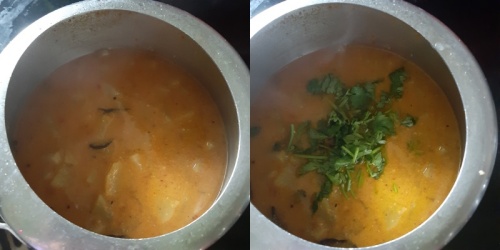 - Remove after the pressure is released naturally. Oil floating chow chow kuzhambu will be ready.