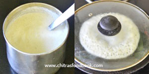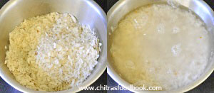 - Grind the batter till smooth and semi thick like dosa batter. Transfer to a vessel and ferment it over night.