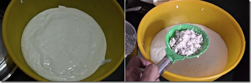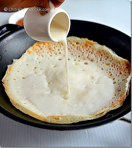 2. If the bottom of the dosa sticks to the pan and doesn’t come out well,it shows coconut milk added is more than the required measure.So add little more idli batter ( Say 1/2 cup) and try it.