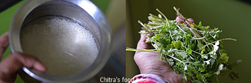 In this week’s Sunday lunch recipe series, I am sharing an easy yet interesting biryani recipe using coriander leaves. Generally we all make Green rice/Pulao using mint and coriander leaves for lunch box. But when I came across this biryani recipe in Aval Vikatan’s Kalyana Samayal Supplementary edition, I got tempted to try it immediately. It was titled as “Kovai Kothamalli Biryani”. This recipe was given by a marriage caterer. I had already tried Ennai Kathirikai Poriyal and Mixed Vegetable Poriyal from that book and both of them were super hit in my home. So I tried this biryani confidently. It came out well and satisfactory. You can make this biryani when you run short of vegetables in hand. It’s an easy and good lunch box recipe too. Lets see how to make this simple Coriander leaves biryani in detail.