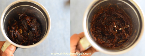 - Wash and chop dates roughly. Grind to a coarse paste. Set aside.