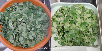 - Clean the drumstick leaves by removing its stem. Wash it thrice.