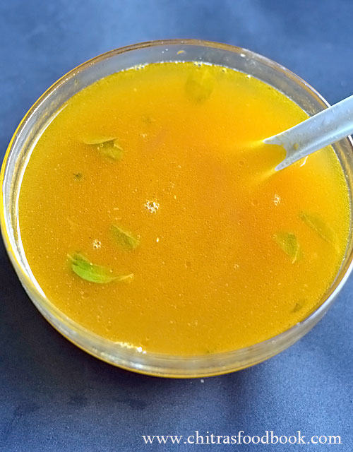 - Remove and add pepper powder. Serve hot. You can also filter the soup through metal strainer and enjoy the stock.