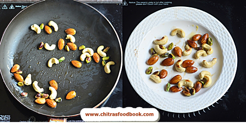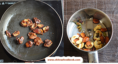 - Collect in a plate. In the same kadai, roast the dates and cool down.