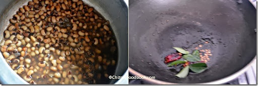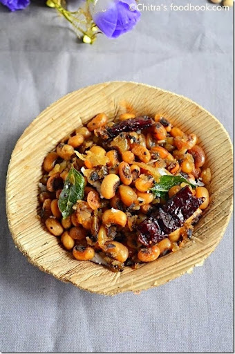 This week I have planned to share some interesting sundal varieties in my blog. Let me start with this easy karamani/lobia /black eyed beans/ thatta payaru sweet sundal with jaggery. For any sundal , pulses/grains should be soaked, cooked and tempered. And for sweet sundal, cooked pulses should be mixed with jaggery syrup.This is the usual procedure.. Last year I posted green gram sweet sundal using the same method . But this sundal is much much easier to make. We don’t have to soak the lobia/karamani and no need to make jaggery syrup too. Doesn’t it sound simple, quick and easy friends ? 🙂 .I got this recipe from one of my cookbooks. Normally we don’t temper for sweet sundal but in this recipe I have seasoned with mustard and chilli as we do for sweet mango pachadi. It tasted great and flavorful; 🙂 We loved it a lot. If you want, you can skip tempering and add cardamom powder.. Do try this sundal for first day of Navarathri and enjoy !!