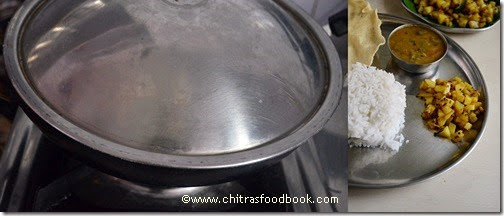 Enjoy this yummy potato poriyal with sambar , rice and papad. Tastes heaven !!