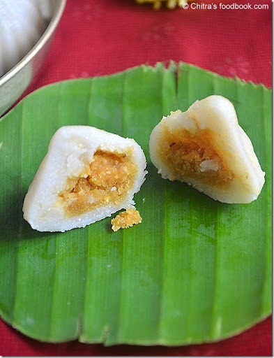 Last year i posted 3 varieties of kozhukattai recipes with tips for crack free kozhukattai after Ganesh chaturthi. This year i wanted to post some ganesh chaturthi special recipes in advance. I was asking my MIL for some kozhukattai varieties which can be done easily. She suggested this easy , no cook sweet pooranam recipe with pottukadalai.