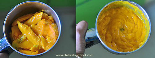 - Wash and peel the skin of ripe mango. Chop, grind and take the pulp.