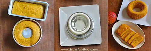 - Invert cake in a plate after it cool down completely. Make slices and serve. Enjoy !