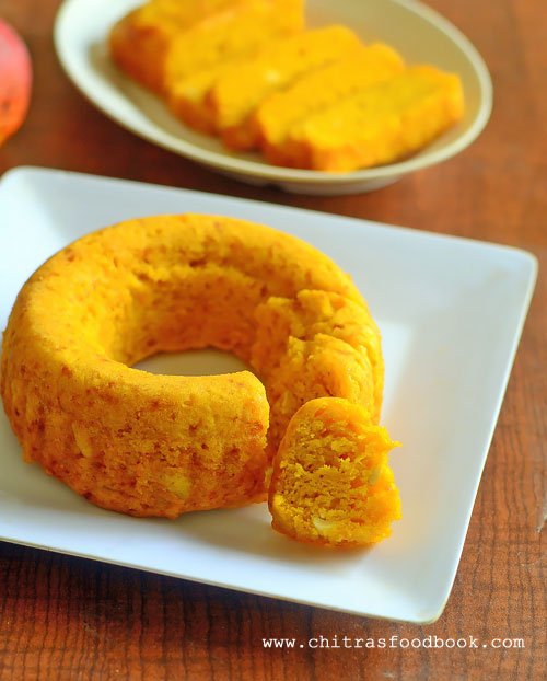 I had bookmarked this Indian style, vegan eggless mango cake without condensed milk from Madhuram’s eggless cooking blog. But I couldn’t try it. So I thought of trying at least in this mango season. Basically eggless mango cake can be prepared with many variations in the ingredients. Today I have come up with a version of mango cake with minimum ingredients. This cake recipe doesn’t call for butter, curd/yogurt, milk or condensed milk.