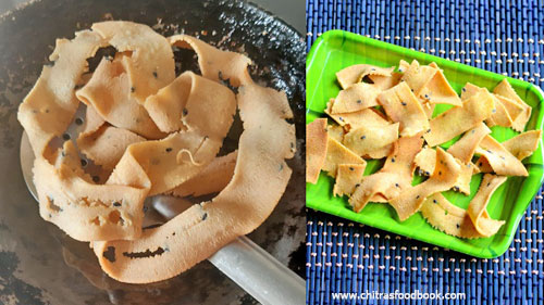 - Deep fry ribbon pakoda till the bubbles and Sshh sound ceases.