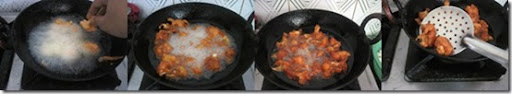 - Heat oil and deep fry the cauliflower pieces. Fry till golden in both the sides.