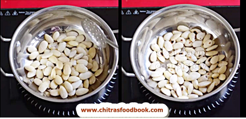 - Peel the skin easily and blanch the almonds.