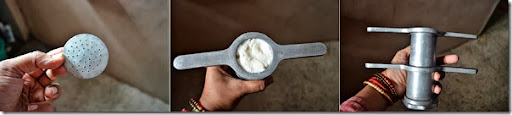 5. If the water is less and the dough is too hard,u cannot squeeze it.Add little more hot water, mix well and squeeze it.It will come off.Hope this helps.