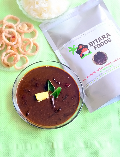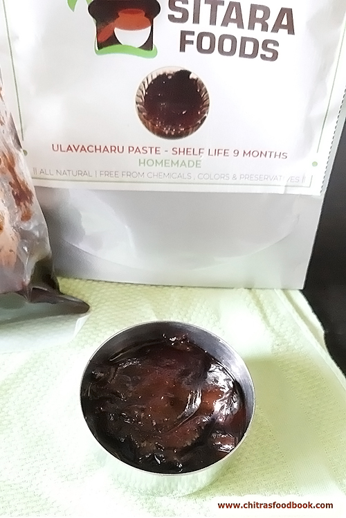 Recently people from Sitara foods, a homemade and handmade food brand based out of Hyderabad reached out to me. They are supported and recognized by the Government of India as a women empowerment startup. Friends , do check out their website sitarafoods.com to see their Andhra special pickles, pulihora paste, masala powders, traditional sweets and fryums. When they asked me to try their readymade ulavacharu paste and make a post in my blog, I had no clue about this recipe. After watching few YouTube videos, I came to know that making ulavacharu is a lengthy process which involves hours of cooking. But Sitara foods has made this authentically on wood fired mud stoves or poyyi by boiling Ulavalu for 14 to 15 hours and then made this readymade paste adding tamarind, spices and is prepared without any preservatives. You can make and enjoy this healthy ulavacharu using this paste effortlessly at home.