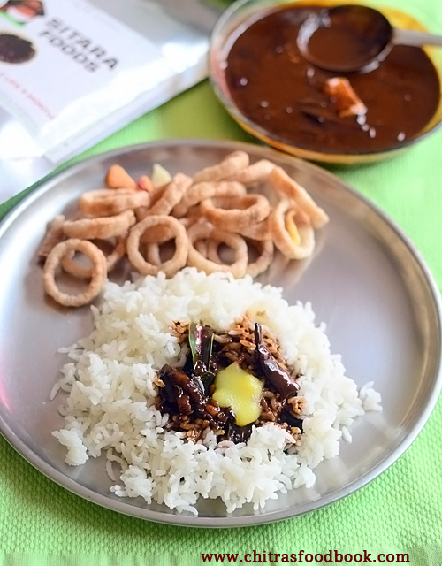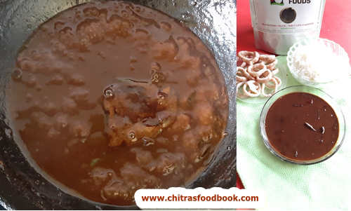All you have to do is just mix the paste in water, simmer and boil till thick. You can do the tempering with or without onion, garlic as you like. I did small modifications in this recipe by adding chilli powder as the spice level is less in this paste. So you can adjust it as per your taste buds. I made it for our weekend lunch. The smell was amazingly good. While boiling, its aroma was wafting through the entire house which tempted us to eat. I am sure everyone would love to try this delicious and delightful dish undoubtedly. As I am not aware of the authentic taste of ulavacharu, I passed a sample of this paste to my neighbor who is from Andhra. She too liked it and gave a good feedback. Apart from the spice level, everything is good in this paste. Friends, do check out and buy this ulavacharu paste from Sitara foods. It will be helpful for bachelors and people who travel abroad to make a quick lunch. Sitara foods is giving a shelf life of 9 months for this product under refrigeration. I hope you find the price reasonable as well. Ok, lets see how to make this yummy and tasty Andhra special ulavacharu easily, instantly and quickly using this readymade paste from Sitara foods.