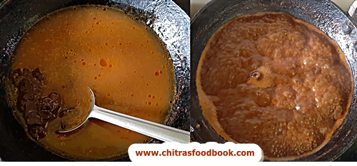 - Heat a kadai and add this diluted ulavacharu. Boil for few minutes in low flame.