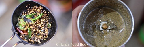 - In a small kadai, roast all the ingredients given under " to roast & grind" till pepper corns start to splutter and urad dal turns golden brown. After its cooled down, grind it to a smooth paste adding required water.