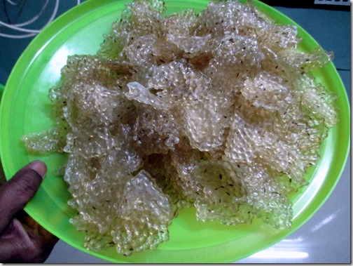 • Spread the vadam in the cloth or a paper and again sun dry  in morning and put under fan for another 2-3 days till they are completely dry. Deep fry in oil and enjoy with rice.