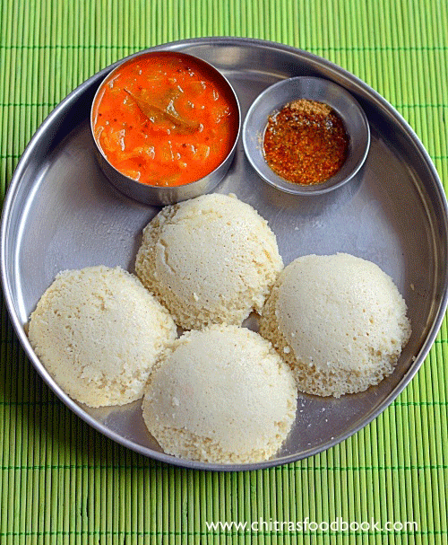 Jowar idli tastes the best with coconut chutney, tomato and onion based chutneys or tomato thokku. I served it with tomato thokku and idli podi. We loved it. I am happy that I can include this recipe in our regular diet too. Friends, do try this easy and yummy jowar idli / Sorghum idli and enjoy for your breakfast and dinner !