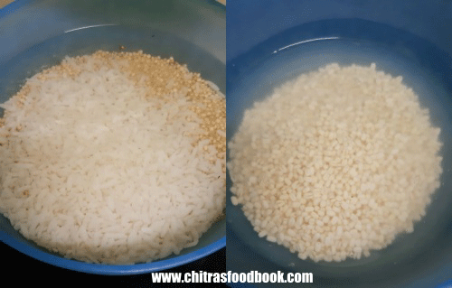 - Wash the urad dal + methi seeds together for 2 times and enough water to soak it for 2 hours.